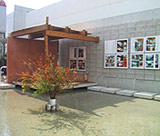 ![]() 沖縄の原風景の写真が貼られた列柱が外部へと誘う |