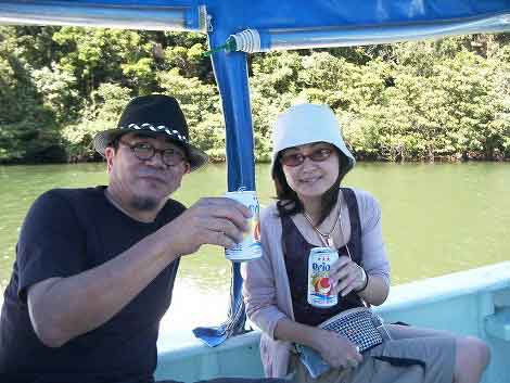 遊覧船に乗りました。とりあえずビールで乾杯。