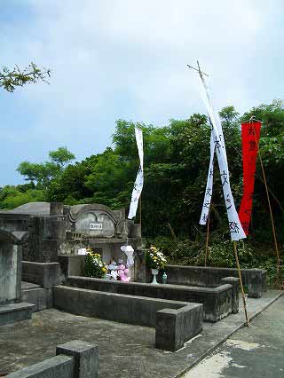 アールに石が積まれ、のぼりが上がっている風景は印象的。