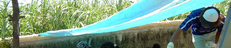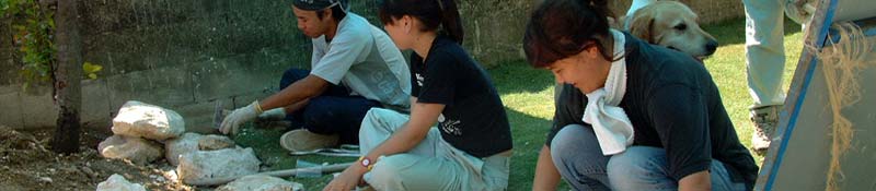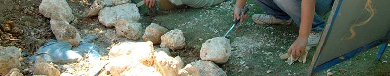 当日はいい天気に恵まれました。日を避けながら石を割る