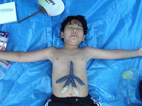 東京から沖縄に遊びに来ていた涼介君。これで俺もヒトデの仲間。