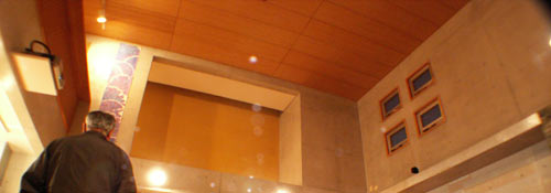 夕方、リビングの様子。人も落ち着き、ゆっくりと見学している様子。