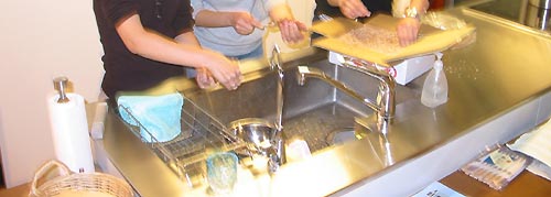まずは準備から。活きた海老を下ごしらえしている様子。