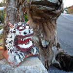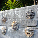 | 天気に恵まれいい散歩日和となりました。 沿道や垣根の上,花壇、塀など 至る所で手作りシーサーが出迎えてくれました。 |
