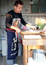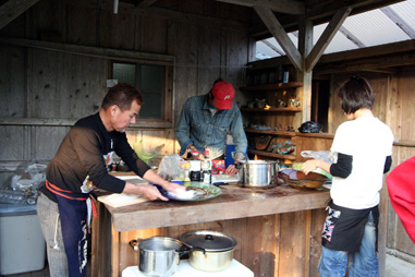 料理の準備中。 左:はるんの料理長Pちゃん 中:パティシエちいちゃん 右:船長石川さん |