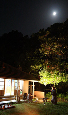 ムイと頭上の月が知念さんの笛の音色と重なり幻想的な雰囲気に包まれました。 目、耳を通して心を癒す迫力ある風景の「美」は 豊かな感情となり表現力、想像力となります。 |