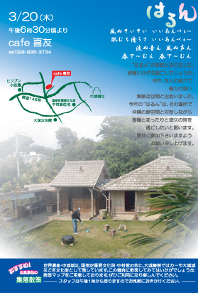またまた即興。今度は笛、三振、唄でトゥバラーマ。 |
